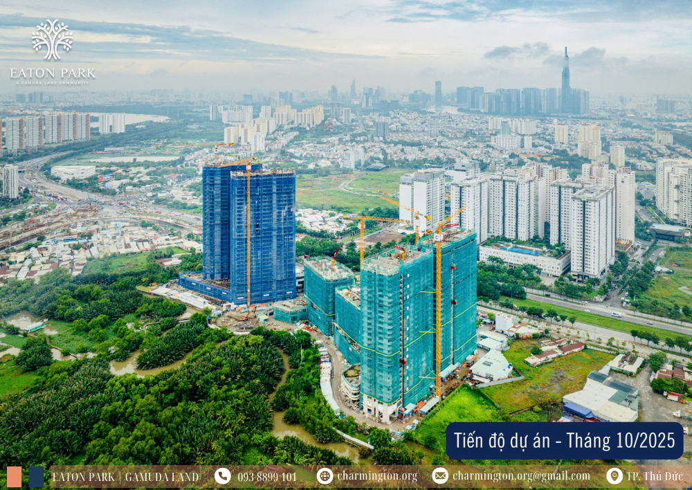 Charmington.org | Dự án Căn hộ Eaton Park đang là dự án nổi bật tại thị trường căn hộ hạng sang trung tâm TPHCM không chỉ bởi thương hiệu đầu tư phát triển quốc tế GamudaLand, Mà còn bởi tiến độ xây dựng thần tốc chưa từng có. Phòng kinh doanh xin cập nhật tiến độ xây dựng Căn hộ Eaton Park 31/10/2025 xin gửi đến Anh Chị.