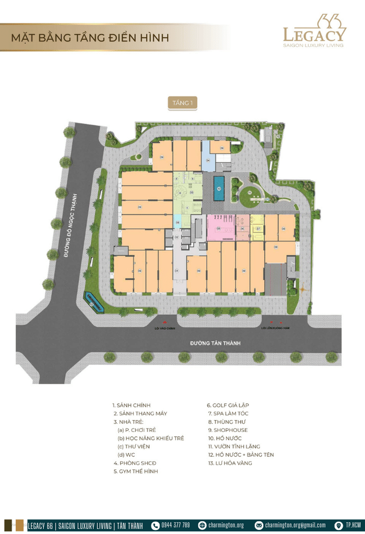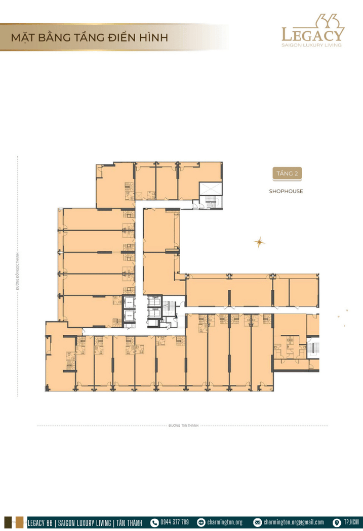 Với lợi thế 2 mặt tiền đường Tân Thành & đường Đỗ Ngọc Thạnh, dự án Legacy 66 mang lợi thế di chuyển và thương mại rất lớn mà hiếm dự án nào có được. Tận dụng lợi thế đó, Tầng trệt + 2 của dự án là thiết kế công năng các tiện ích cơ bản và Shophouse thương mại.
