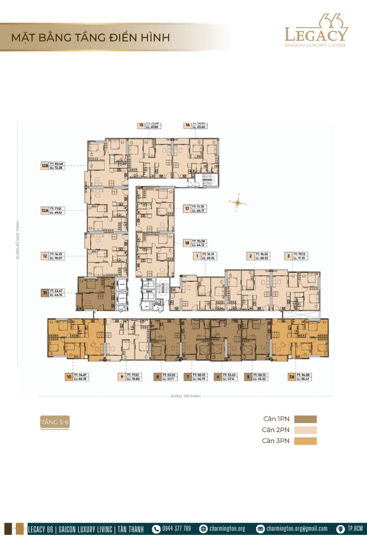 Tầng 5 | Tầng 6 Legacy 66 được thiết kế 18 căn/mặt bằng với 04 thang máy và 01 thang chở hàng hóa, tỷ lệ chuẩn cao cấp, mỗi căn hộ đều có ánh sáng và view nhìn tự nhiên.