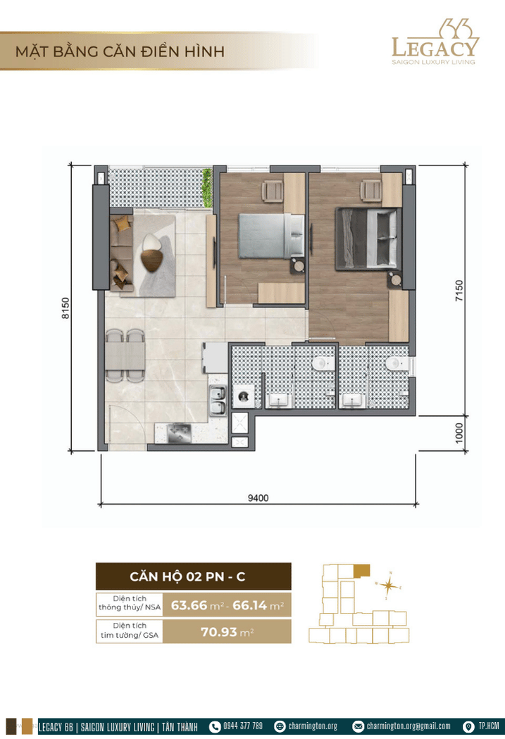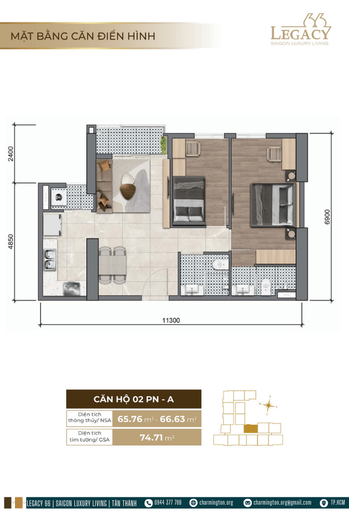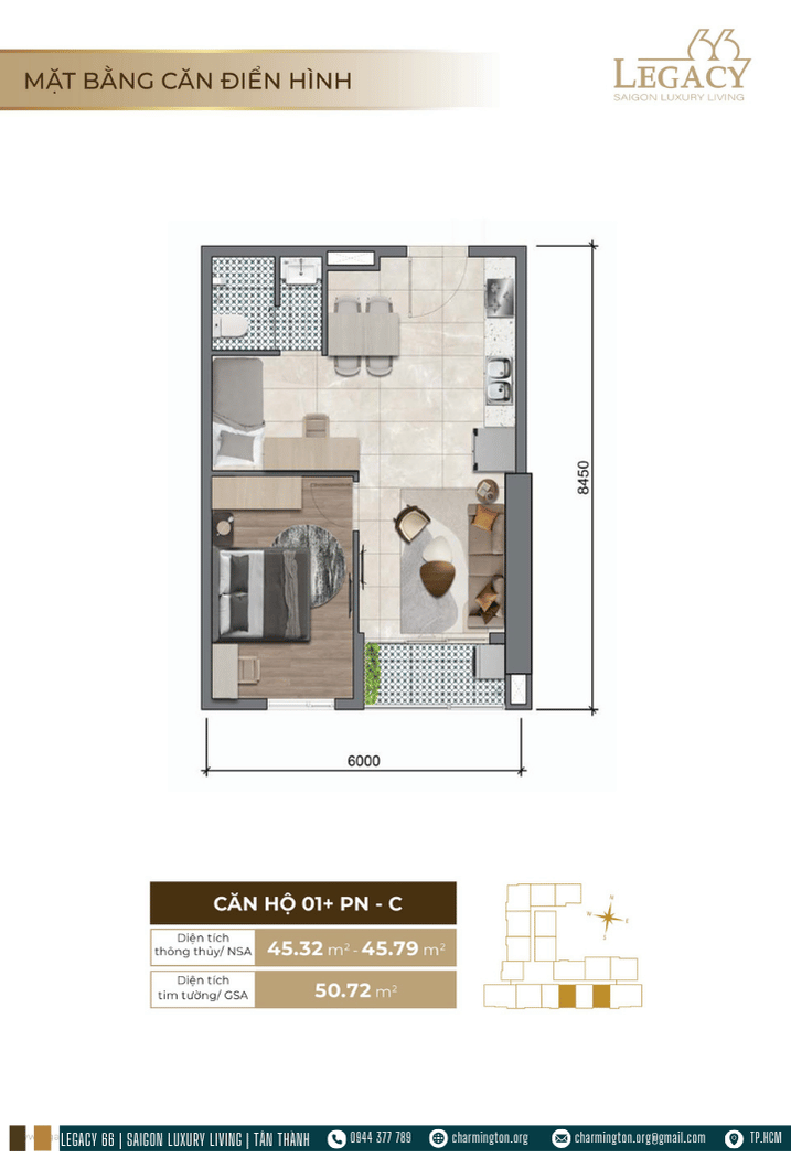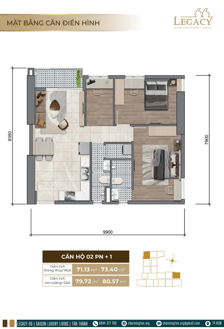 Các loại hình có tại Legacy 66 bao gồm shophouse, căn hộ 1PN, 2PN, 2PN+ và 3PN đáp ứng đầy đủ nhu cầu của khách hàng