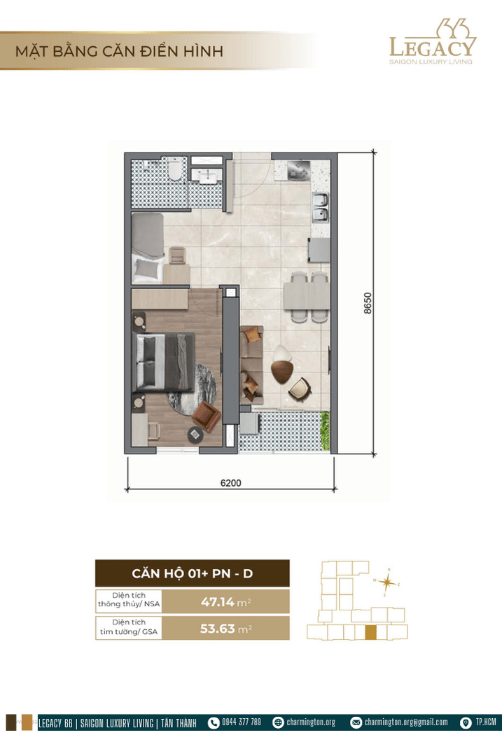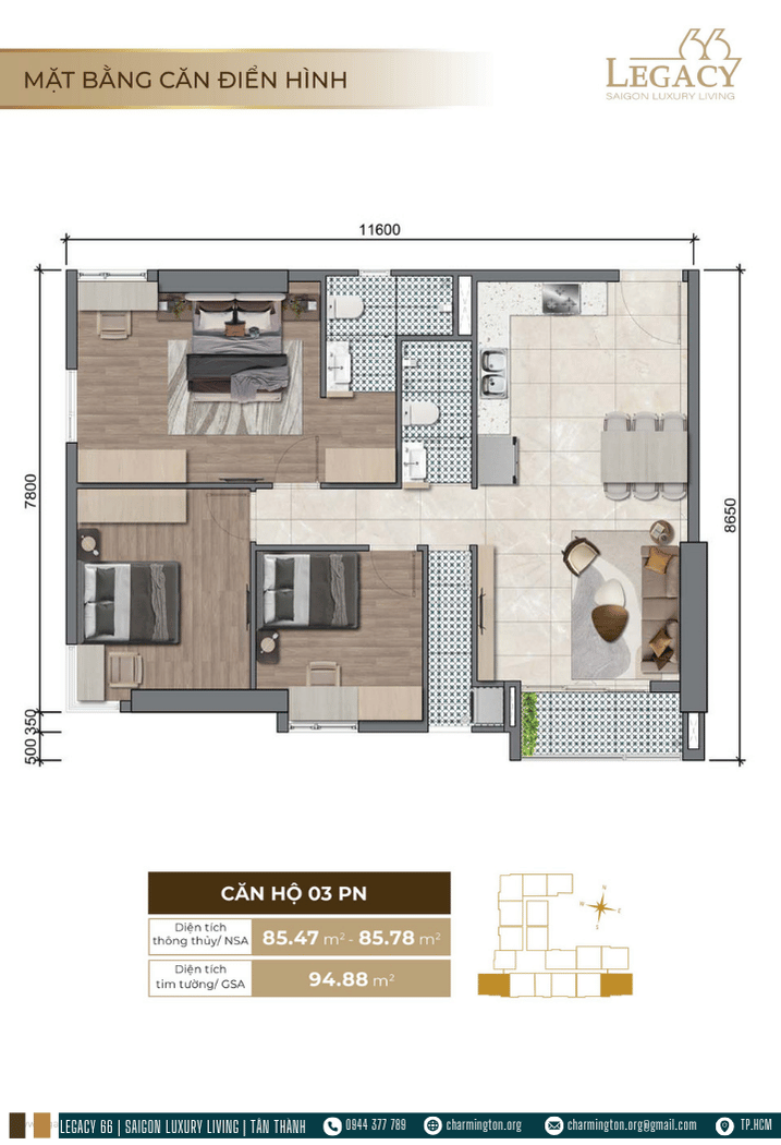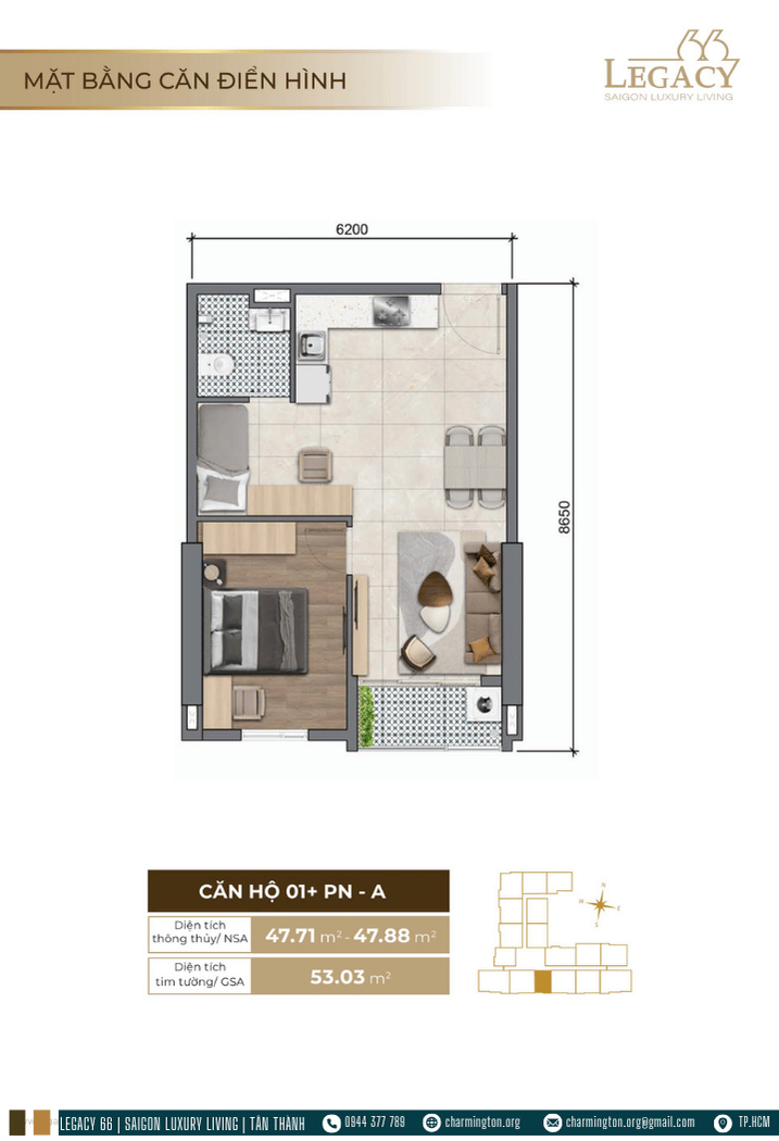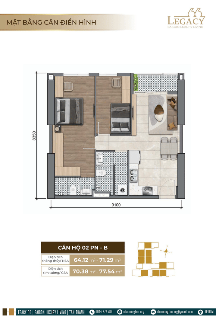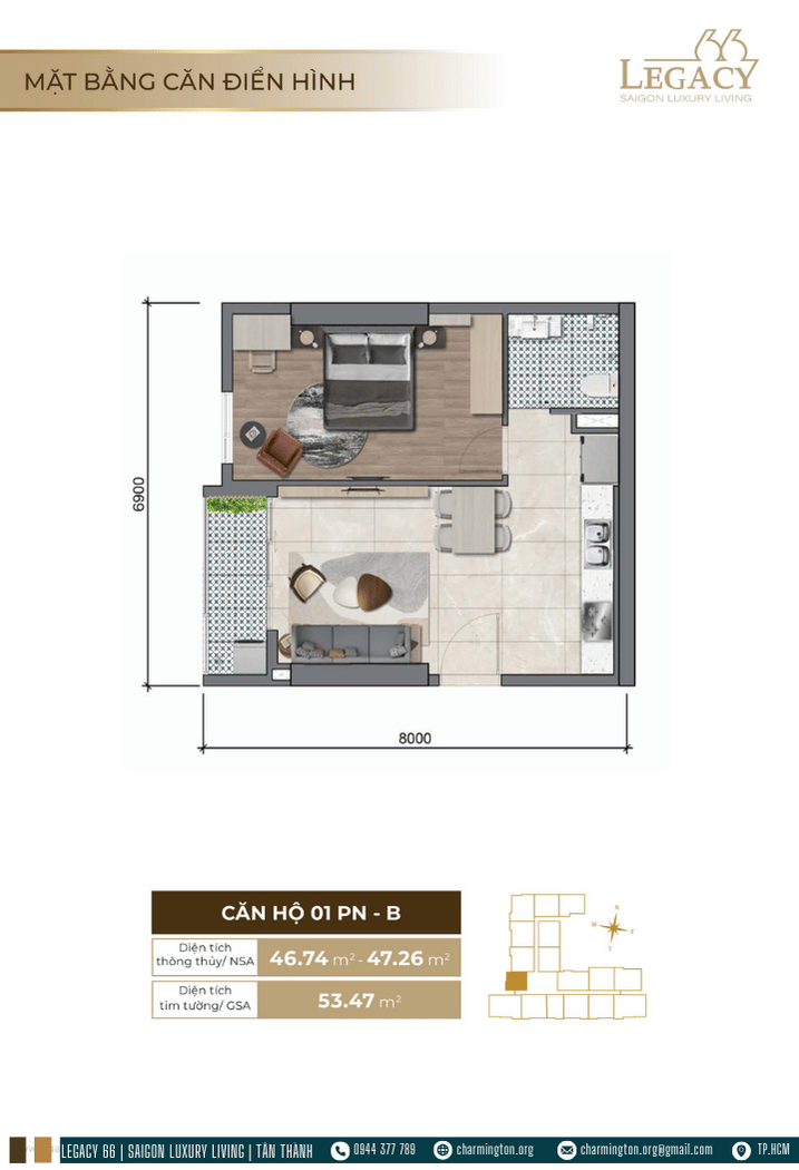 Các loại hình có tại Legacy 66 bao gồm shophouse, căn hộ 1PN, 2PN, 2PN+ và 3PN đáp ứng đầy đủ nhu cầu của khách hàng
