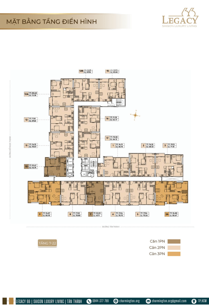 Tầng 7 đến tầng 22 thiết kế 17 căn/tầng