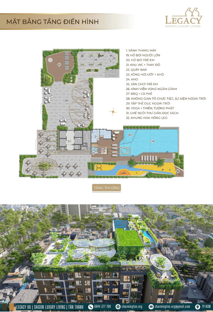 Tất cả các tiện ích nội khu Legacy 66 mang là là sự "đủ trải nghiệm - đủ tinh tế - đủ đẳng cấp" dành riêng cho cư dân, sau một ngày làm việc hiệu suất là thời gian dành cho chính bản thân, gia đình, nơi chăm sóc sức khỏe thể chất và tinh thần sau cánh cửa mỗi căn hộ tại đây.
