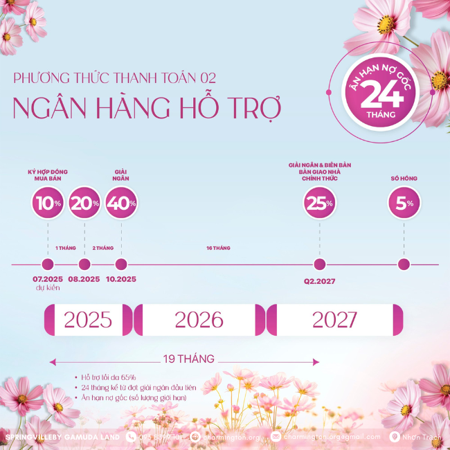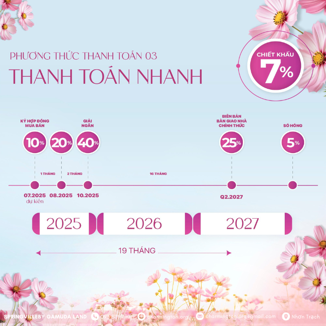 Springville được Gamuda Land với tiềm lực tài chính mạnh mẽ, chủ đầu tư đến từ Malaysia đã xây dựng chính sách bán hàng cực hấp dẫn có đến 6 phương thức thanh toán linh hoạt, được "đo ni đóng giày" cho từng nhóm khách hàng khác nhau, cả giới đầu tư và người mua nhà ở thực.