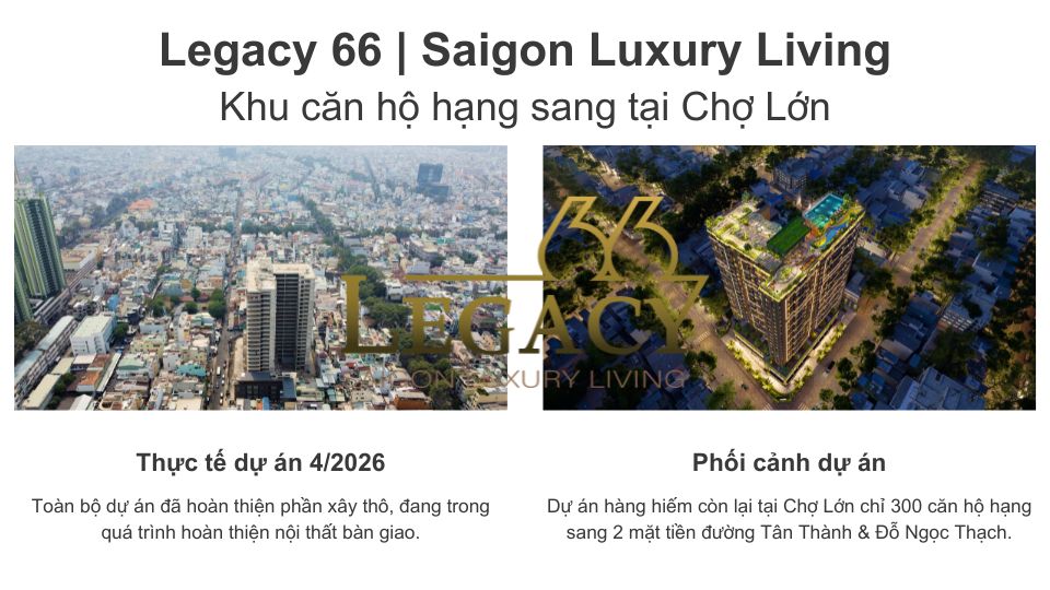 Legacy 66 được kỳ vọng mang đến làn gió mới cho khu Chợ Lớn khi kết hợp giữa yếu tố hiện đại và nền tảng thương mại sẵn có. Trong bối cảnh quỹ đất nội đô ngày càng hạn chế, sự xuất hiện của một dự án mới ngay lõi khu vực được xem là lợi thế đáng kể, đặc biệt khi nằm gần các đầu mối giao thương như Chợ Bình Tây.