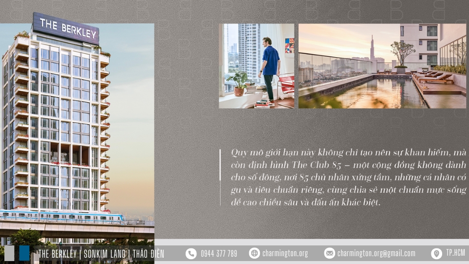 Xu hướng này đang dần định hình một chuẩn sống mới. Tại Thảo Điền, khu phố quốc tế với nhịp sống luôn chuyển động, The Berkley xuất hiện như một lựa chọn khác biệt, không chạy theo số lượng mà hướng đến chiều sâu, không phô trương mà đề cao sự vừa vặn.