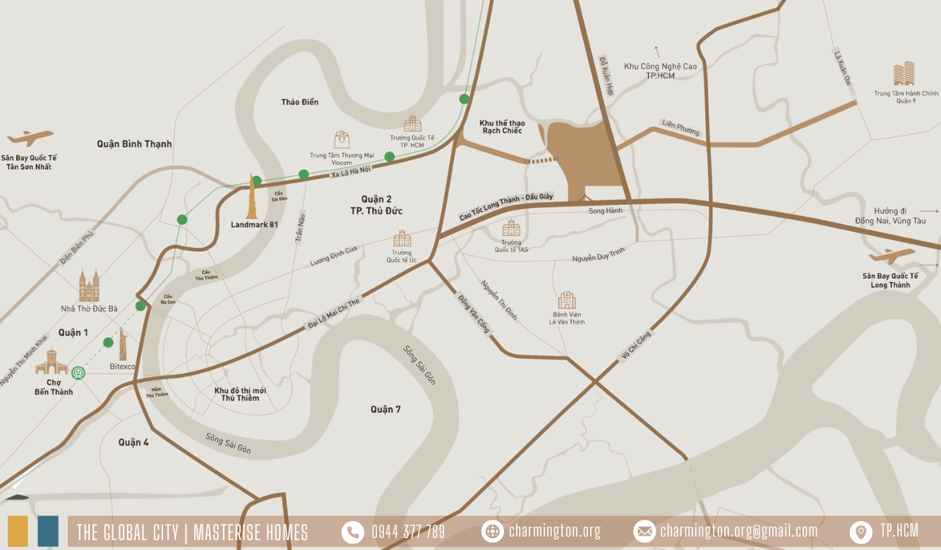 The Global City - Trung tâm mới của Thành phố Hồ Chí Minh, nơi tiên phong trải nghiệm sống đẳng cấp quốc tế. Được Thiết kế bởi Foster + Partners định hình biểu tượng, điểm đến của quốc tế. Nơi Masterise Homes mang đến trải nghiệm sống toàn cầu nhưng vẫn tôn vinh những giá trị văn hóa đậm chất Việt Nam.