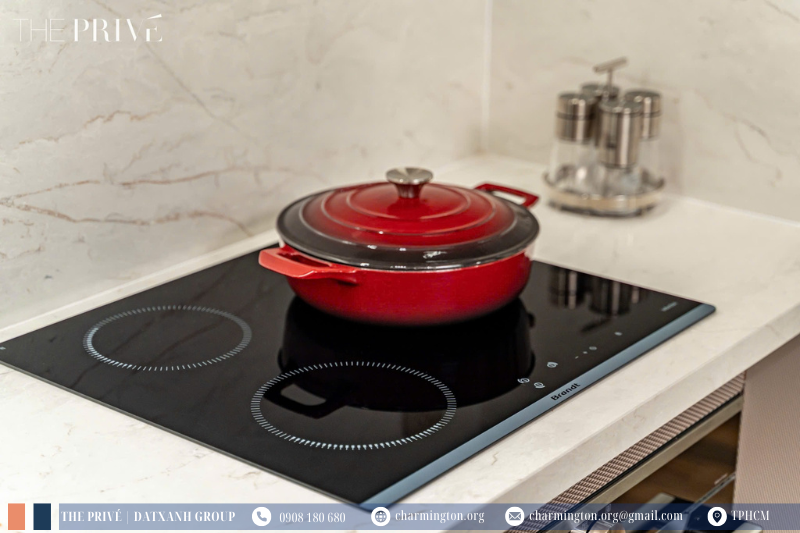 Hệ bếp sẽ được bàn giao toàn diện từ thương hiệu Brandt (Pháp) - Thương hiệu hình thành từ năm 1924 có mặt trên toàn thế giới. Tại Phase 2 The Privé, Brandt đồng hành trong việc trang bị hệ thống thiết bị bếp built-in: thiết kế tối giản, thẩm mỹ liền mạch và chất lượng vượt trội - biến căn bếp thành trái tim tổ ấm.