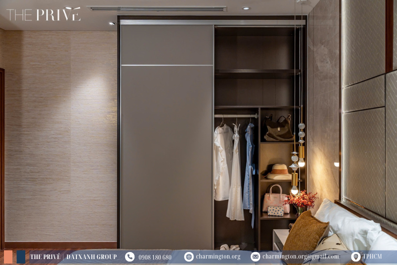 Đặc biệt, mỗi phòng ngủ đều được trang bị 1 tủ quần áo phân chia thông minh, được tính toán từng khu vực, từng ô để tối ưu nhu cầu của nhịp sống hiện đại.