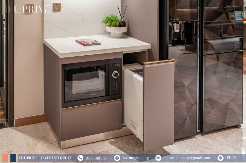 Triết lý Built-in nhấn mạnh vào việc thiết kế có chủ đích để đạt được hiệu suất, chất lượng và sự liền mạch tối đa. Nó là sự cam kết về chất lượng và chức năng được nhúng (embedded) vào sản phẩm hoặc quy trình ngay từ giai đoạn sơ khai. Và tại căn hộ The Privé, triết lý ấy tạo nên sự xuyên suốt, liền mạch từ không gian nội thất, bếp, máy lạnh âm trần...tạo nên sự đẳng cấp, tinh tế khó tả.