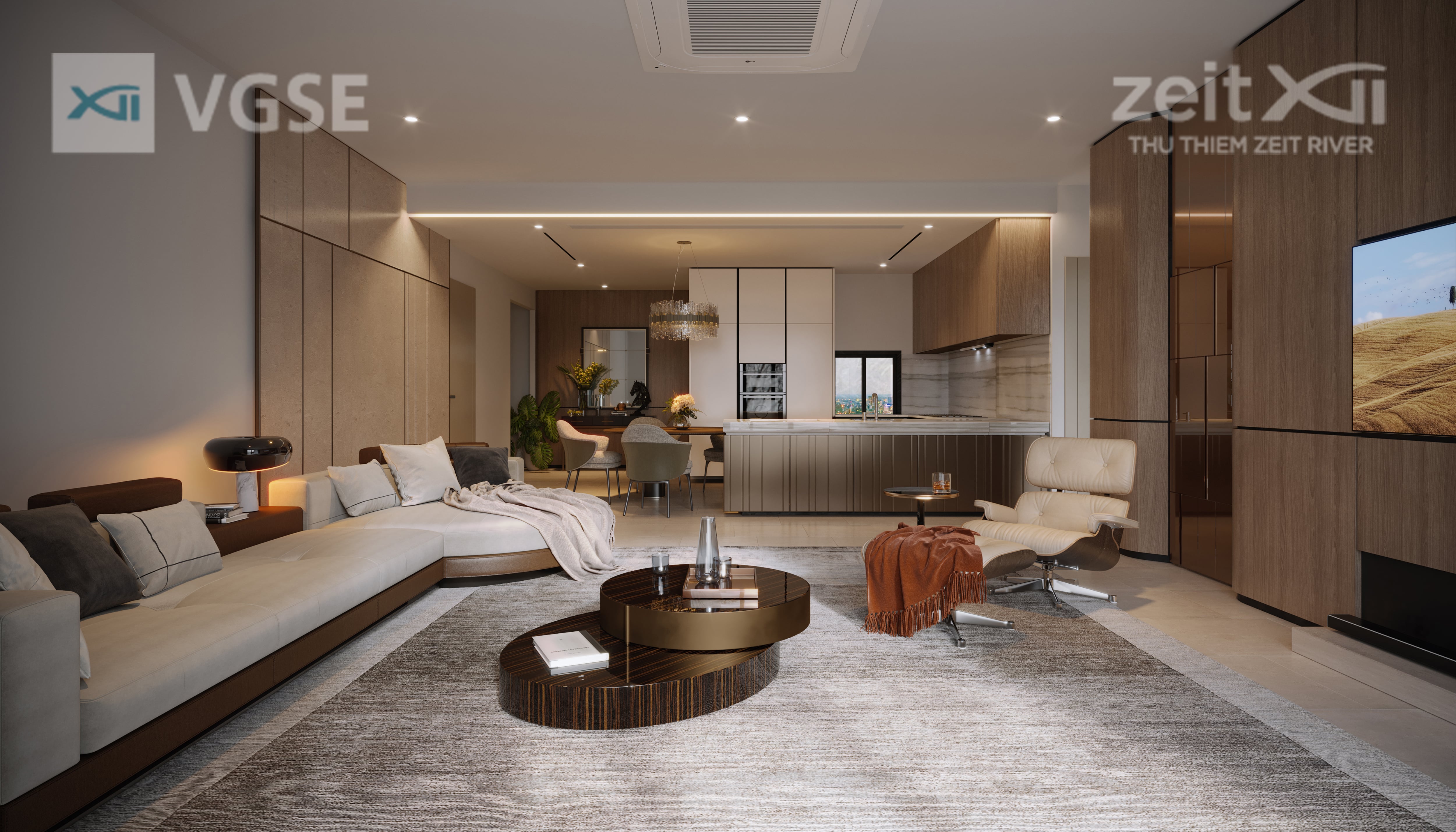 Ngôn ngữ đường cong tinh tế trong kiến trúc và sự cẩn trọng trong từng chi tiết kiến tạo một tuyệt tác kiến trúc “ngôi nhà nở hoa” giữa trái tim thành phố. Tại Thủ Thiêm Zeit River, mỗi căn hộ không chỉ là tổ ấm bình yên trở về mà còn là nơi xúc cảm được yêu chiều trọn vẹn. Zeit River đối đa hóa diện tích sử dụng giúp mở rộng tầm nhìn, mang lại một không gian sống hòa hợp hoàn hảo giữa phong cách sống tinh hoa đương đại cùng thiên nhiên xanh mát bao quanh.