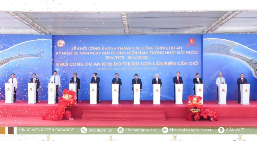 Chào mừng 50 năm Thống nhất đất nước, Tập đoàn Vingroup chính thức khởi công dự án Khu đô thị du lịch lấn biển Cần Giờ - Vinhomes Green Paradise.